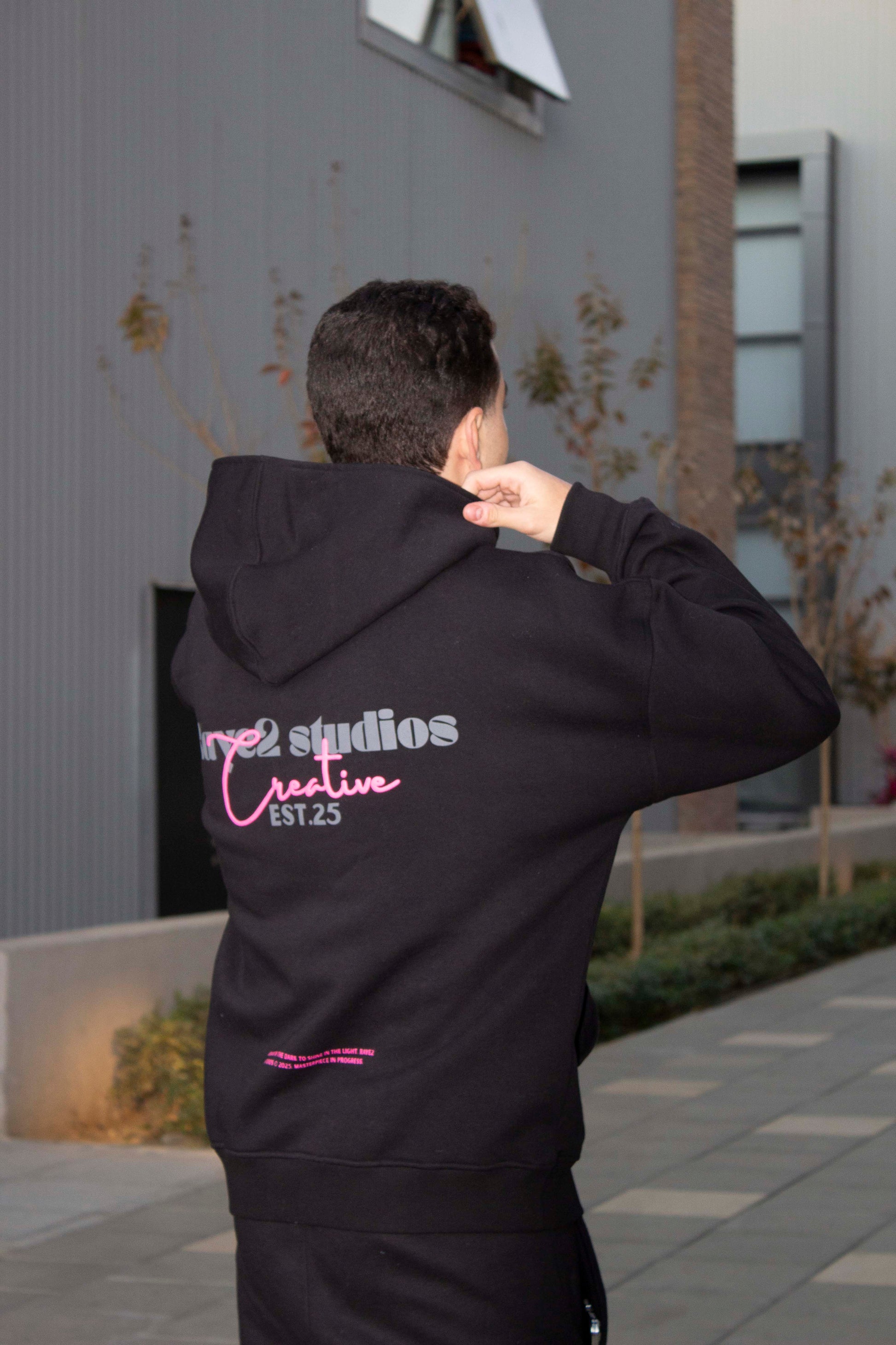 Back Detail: High-quality "RAYE2 STUDIOS" silk screen print combined with a "Creative" Puff print.*